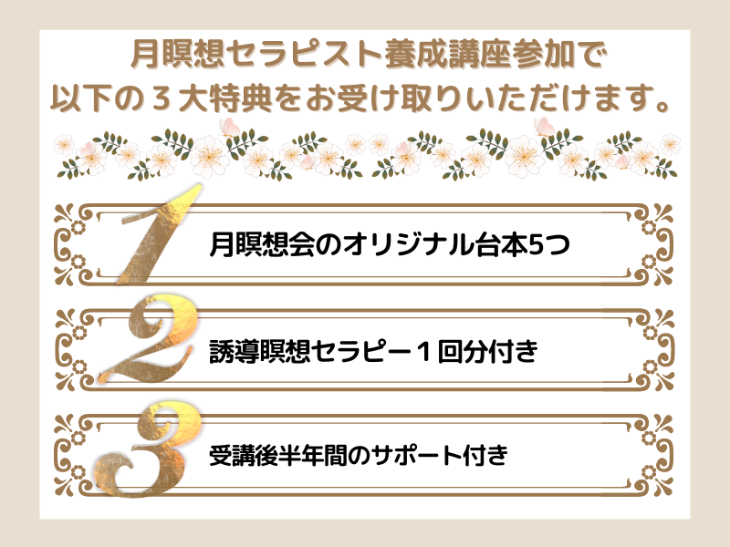 月瞑想セラピスト養成講座 参加費 99,000 円(税込) |