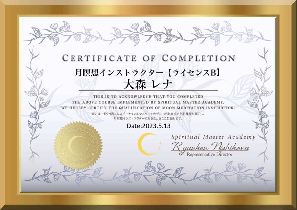月瞑想協会代表、ELコーチング協会代表、Nextレイキヒーリング協会代表 スピリチュアルグランドマスター