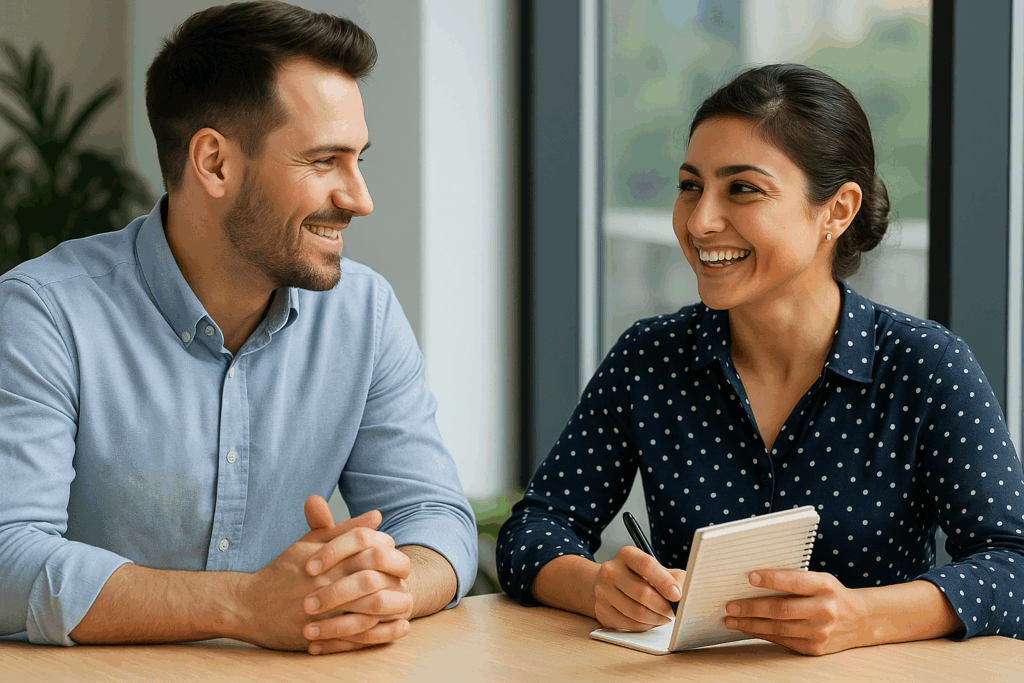 相談者の心を開く質問と、信頼を生む褒め方をまとめたサポート資料。