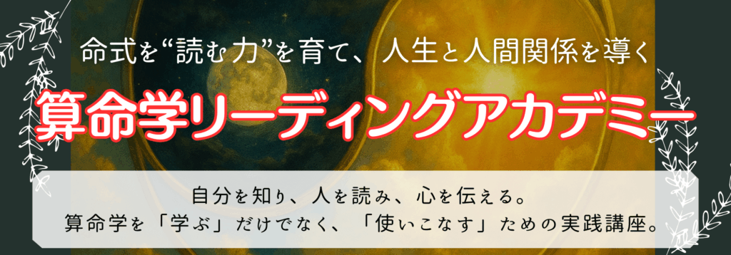 算命学リーディングアカデミーは、“理論を暗記する講座”ではなく、命式を読み解き、実生活や鑑定に活かせる力を育てるための講座です。